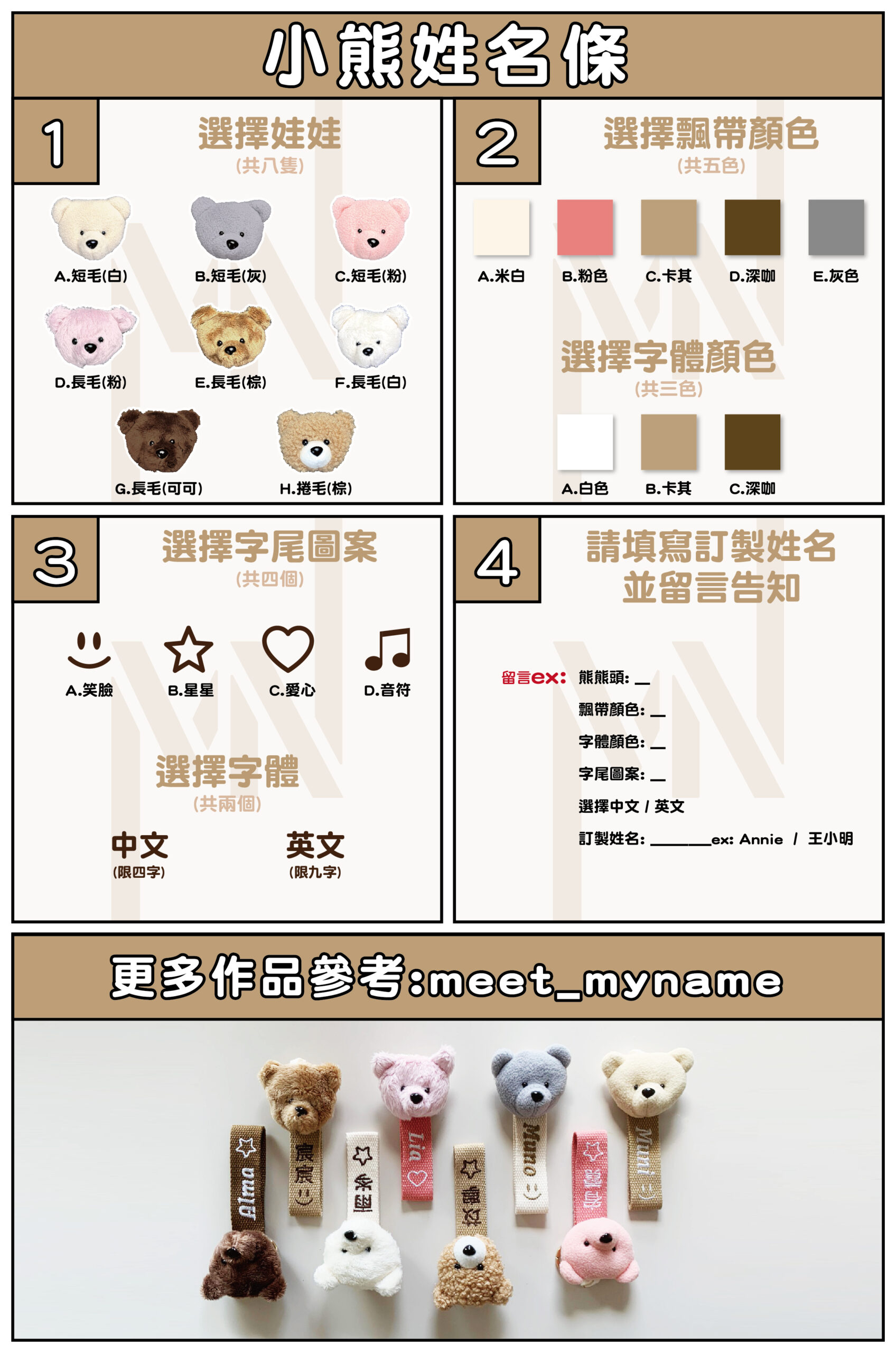 表單填寫 (請直接幫我們填寫在私訊內,我們會與您final check訂制內容喔)